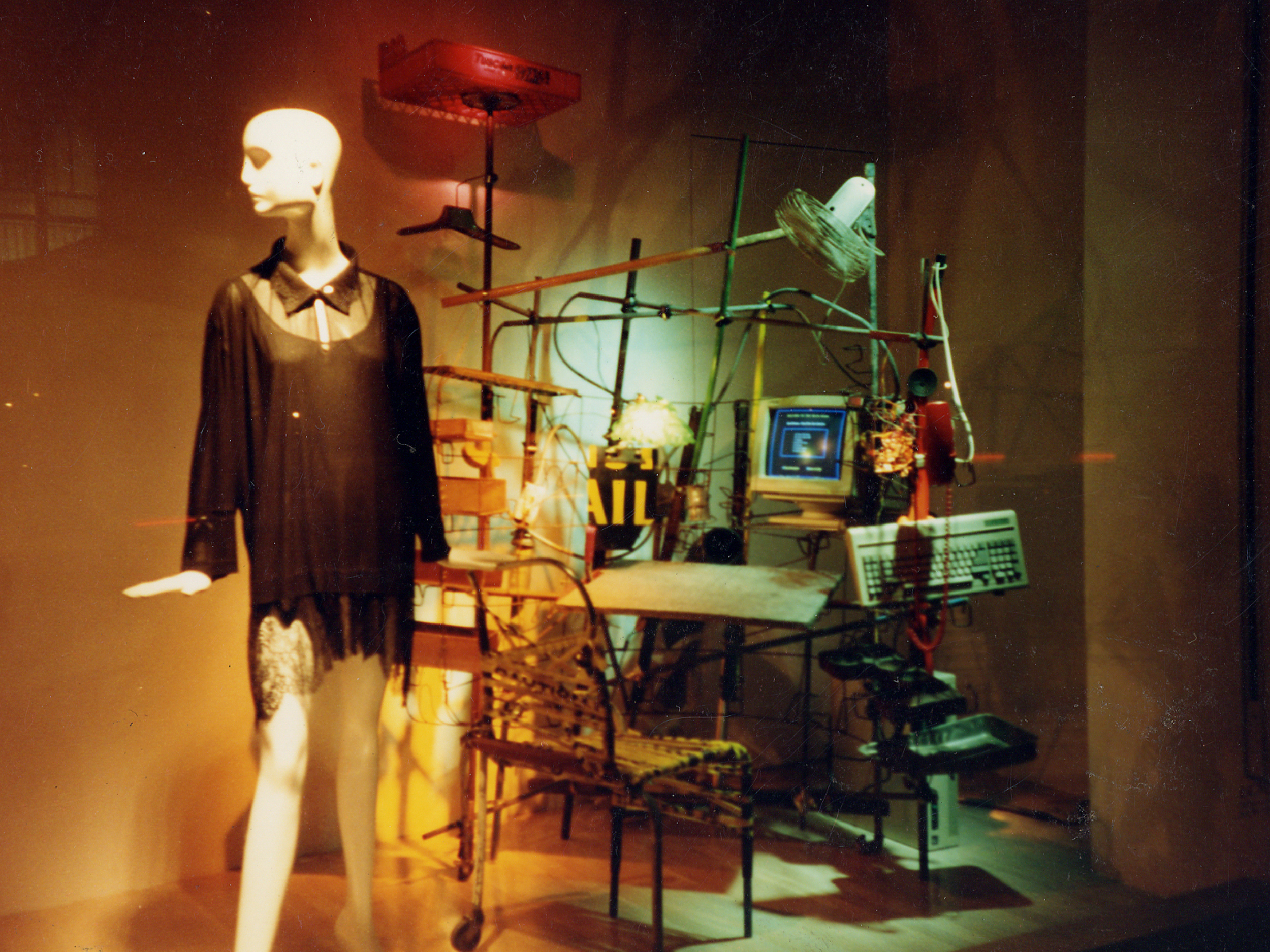In the windows, mannequins dressed in Martin Margiela and Jil Sander complemented and activated the domestic lifestyle.