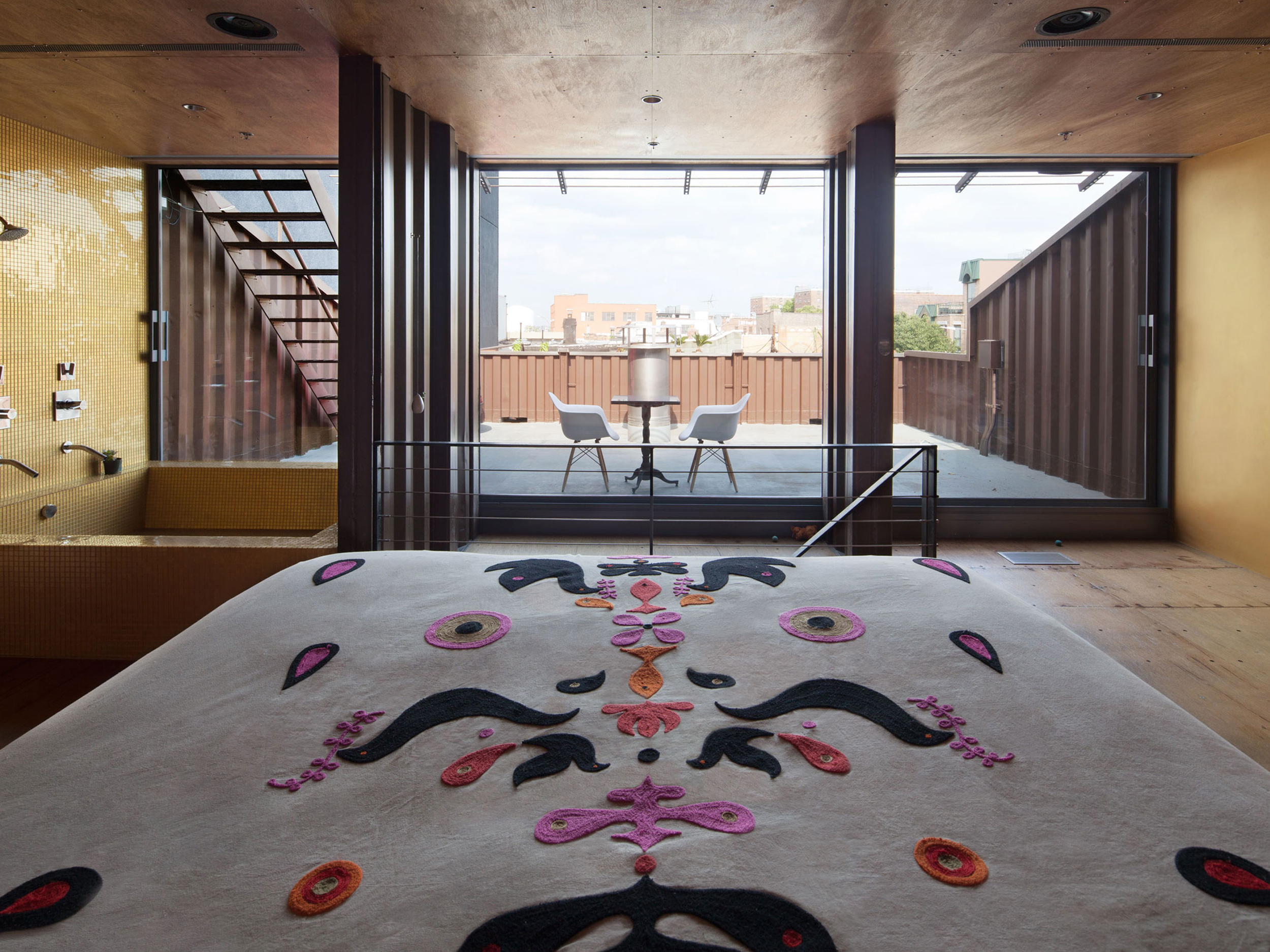 The Carroll House repurposes 15 steel shipping containers into a unique single-family residence, blending industrial character with thoughtful design. Located on a 25x100-foot corner lot in Brooklyn's Williamsburg neighborhood, the home reflects the area's industrial heritage while embracing its evolving urban landscape.