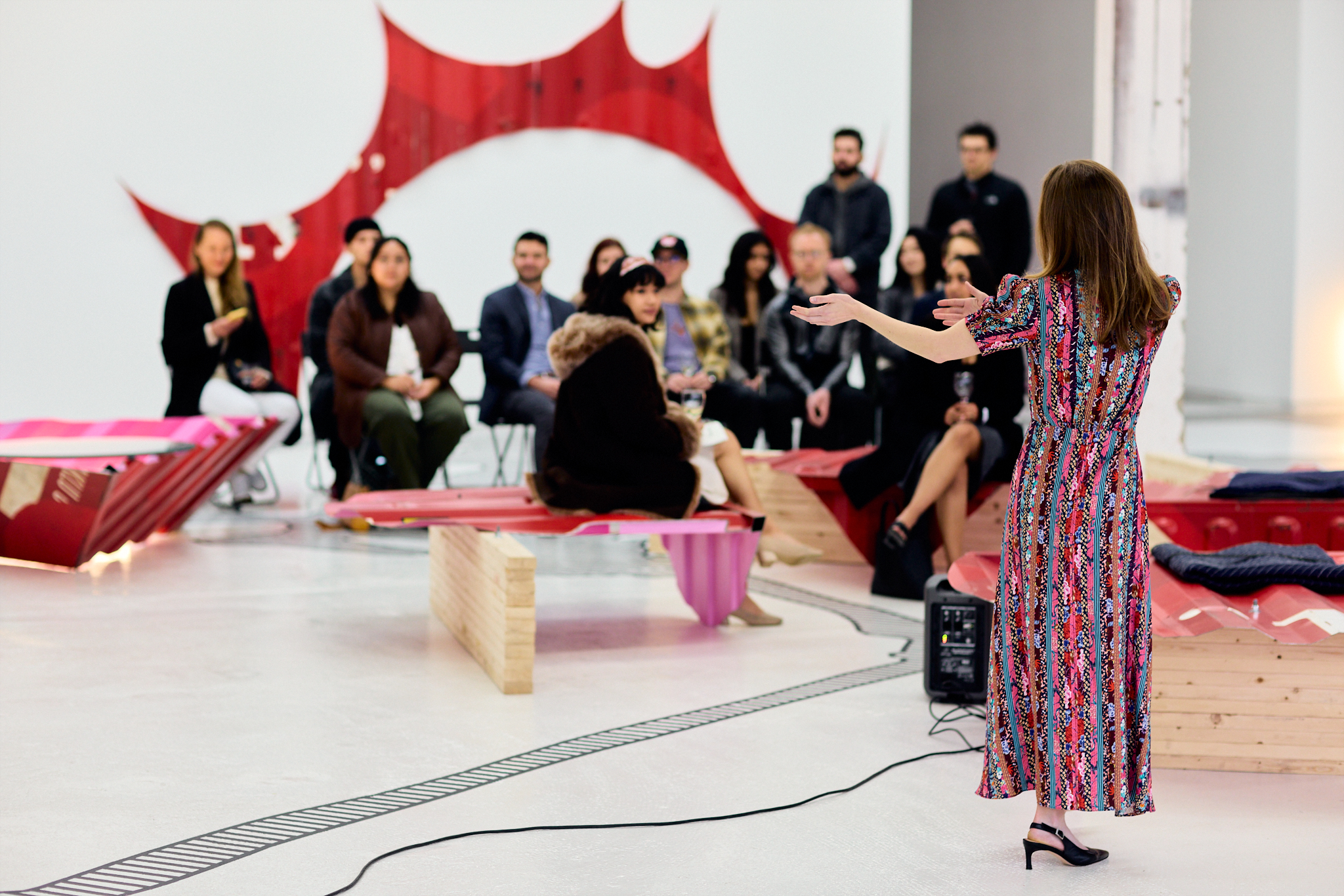 SPILL begins in response to the elusiveness and opacity of the shipping world. And to its excess. Our container has been vivisected or dissected – or cut apart or broken open – to incite pause. Its fragments are literally spilled: to welcome, to allow wondering, seating, connections and conversations, around them and in close proximity, as this completely mysterious object is now fully exposed to all.